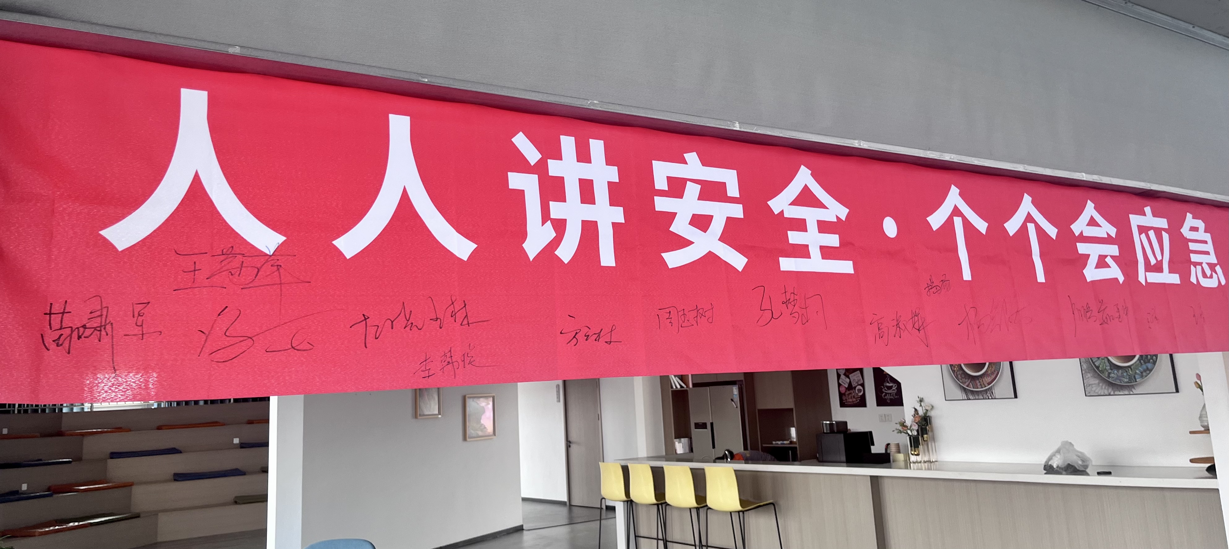 会议开始前组织各参会人员在本年度安全生产月活动宣传横幅上签字,通过该种形式强化集团公司各中心负责人对安全生产工作的使命感及责任感。