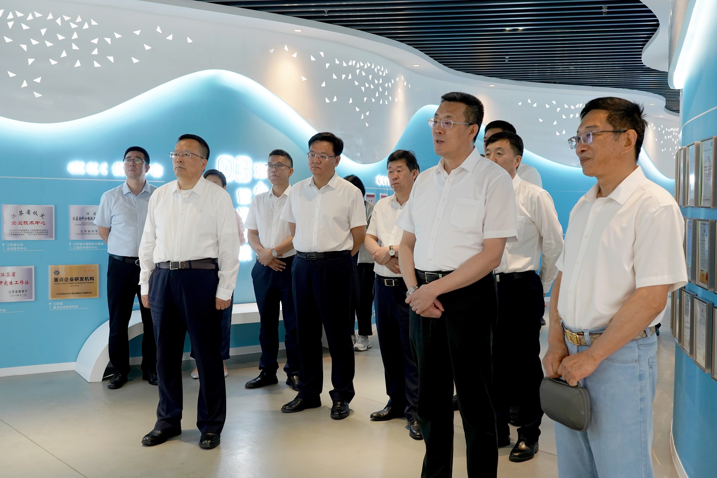 邢鹏市长一行先后参观了新材料研究院、企业展厅、党建文化及员工生活阵地,参观过程中深入了解了bw必威西汉姆联的发展历程、企业文化及产品技术创新能力。