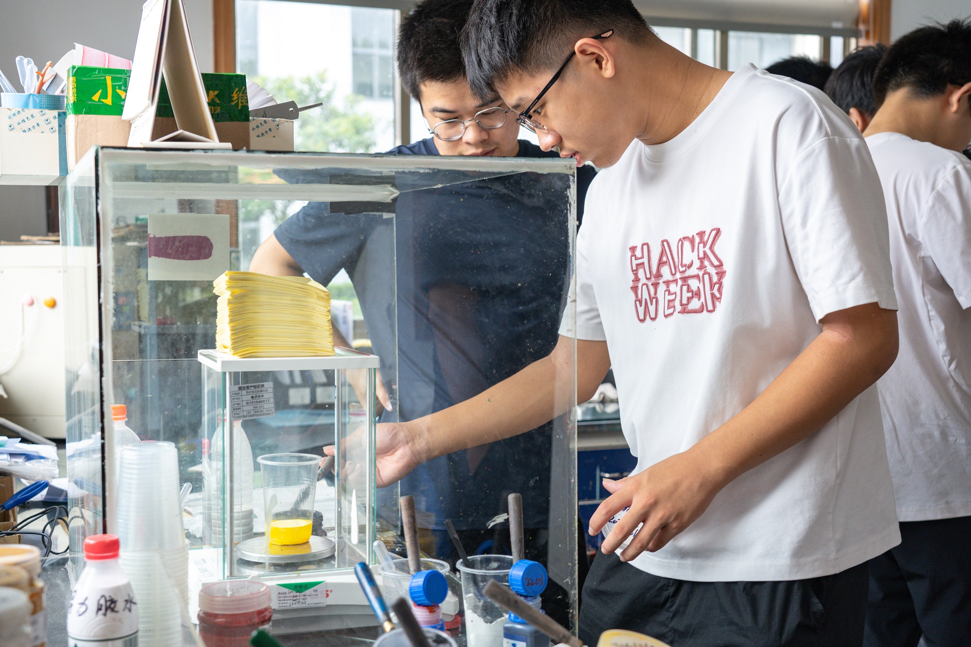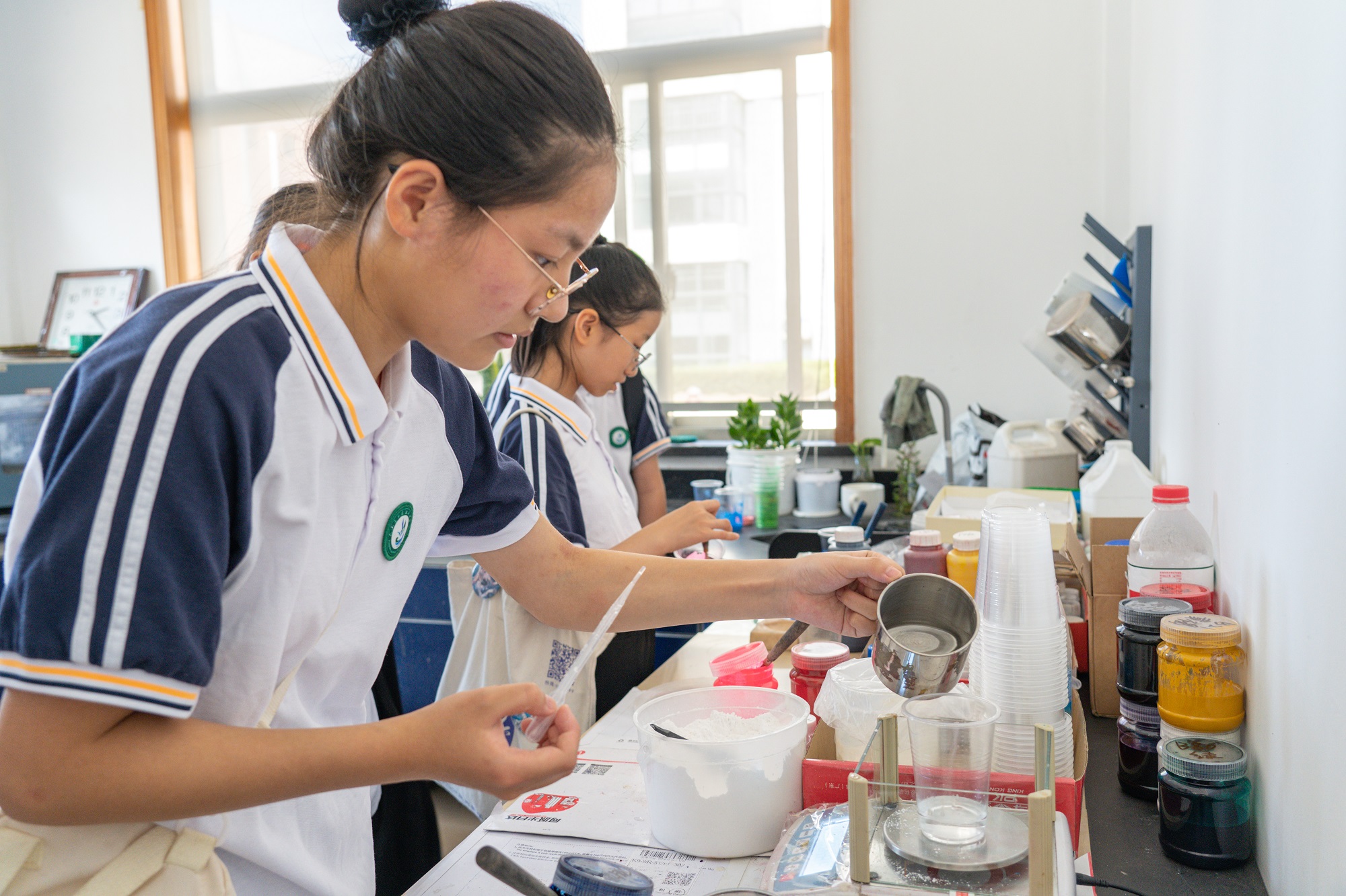“纸上得来终觉浅,绝知此事要躬行。”在公司的实验室里,同学们通过实践操作,了解色彩在各行各业中的应用,感知不同的颜色碰撞在一起的神奇之处,并亲身体验了一支粉笔从调色、混合石膏到最后烘干成型的过程。