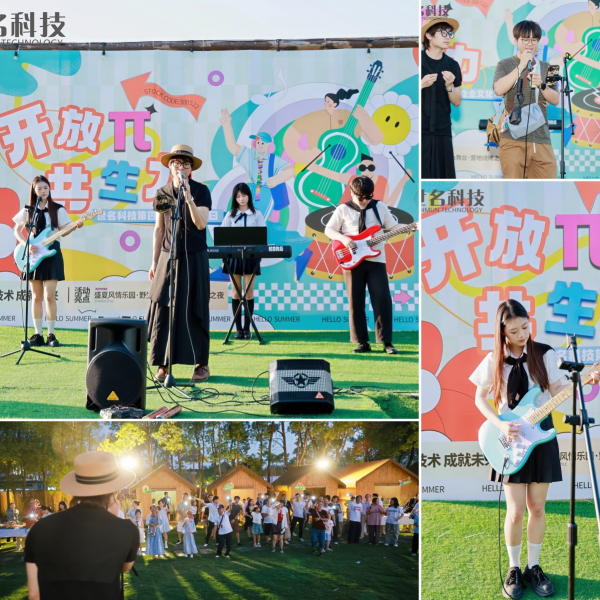 野生嗨π舞台,音浪点燃全程,专业乐队震撼开麦,台下手机灯光汇成点点星海。大家跟着节奏摇摆、合唱,草坪秒变露天音乐节现场!